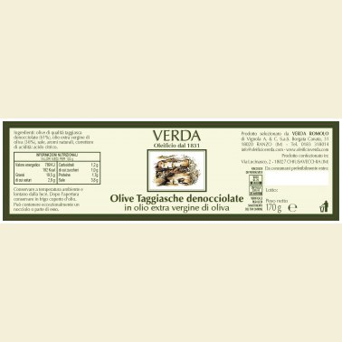 Olive di cultivar Taggiasca conservate secondo il metodo tradizionale con il solo impiego di acqua e sale. Denocciolate e conservate in olio extra vergine di oliva. Utilizzate come antipasto o accompagnate a carni, verdure, pizze, sughi, ecc. Lavorazione artigianale meccanica.